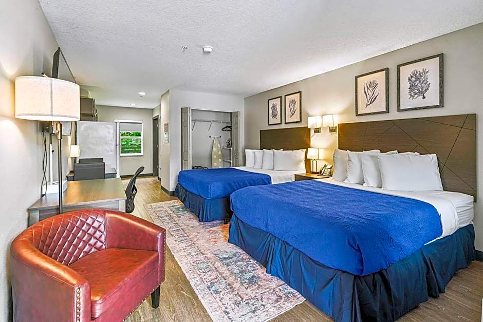 Room options span from cozy Studios to roomy two-bedroom suites. The Deluxe Studio includes two Queen beds in about 398 square feet. The Studio offers a single Queen bed in the same size. Deluxe, Single provides two Queen beds, while the Deluxe Suite offers a Queen bed in 398 square feet. For larger groups, the Suite, 2 Bedroom spans 753 square feet and sleeps up to five with two Queen beds and a Sofa Bed. Another option, Deluxe (Double), features two Queen beds for two adults.